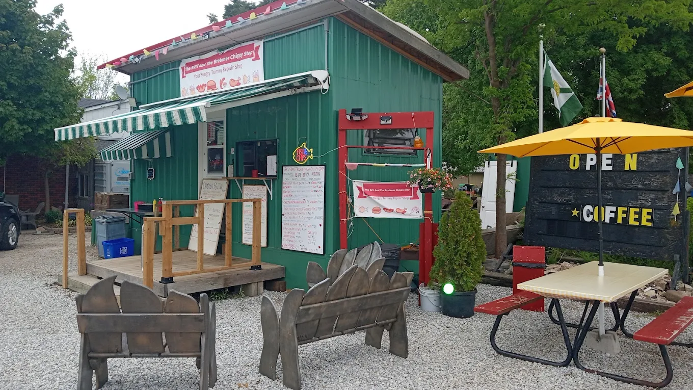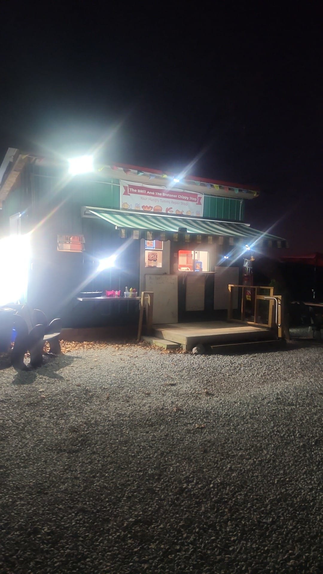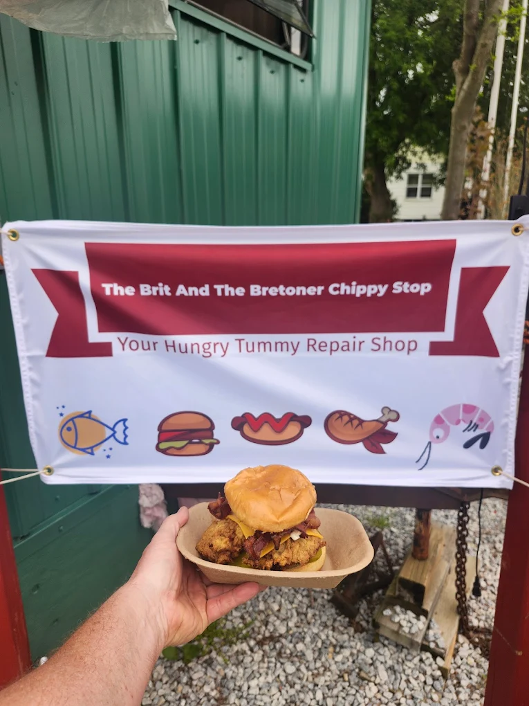 The Brit and Bretoner Chippy Stop made to repair hungry tummies with: Homemade burgers, fries, chicken and fish. Newbury.