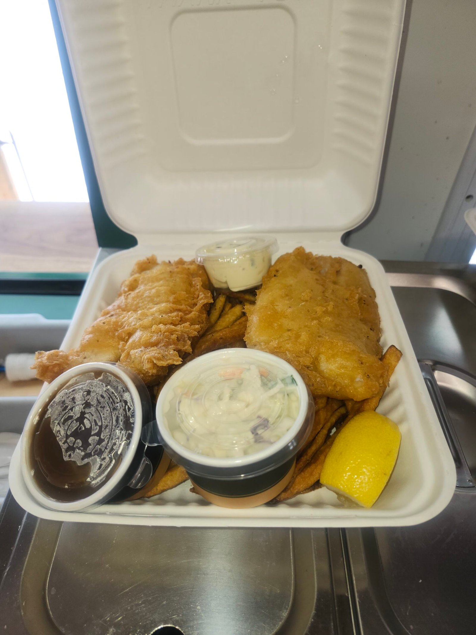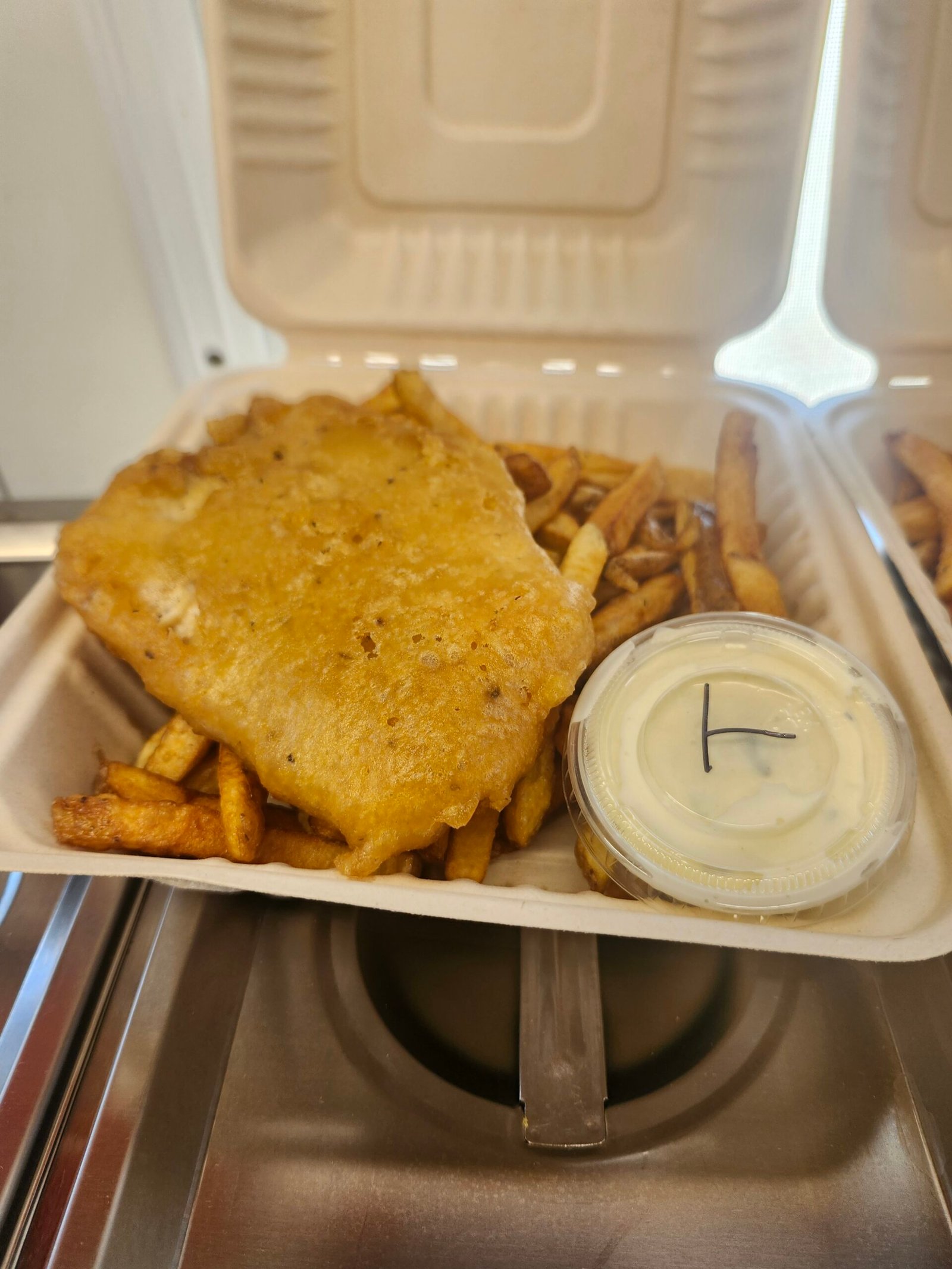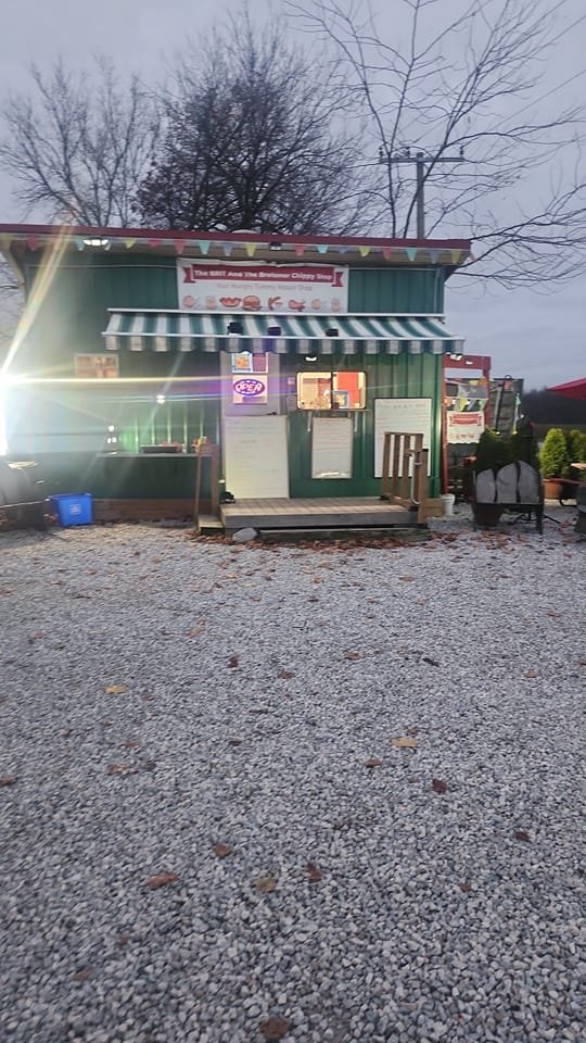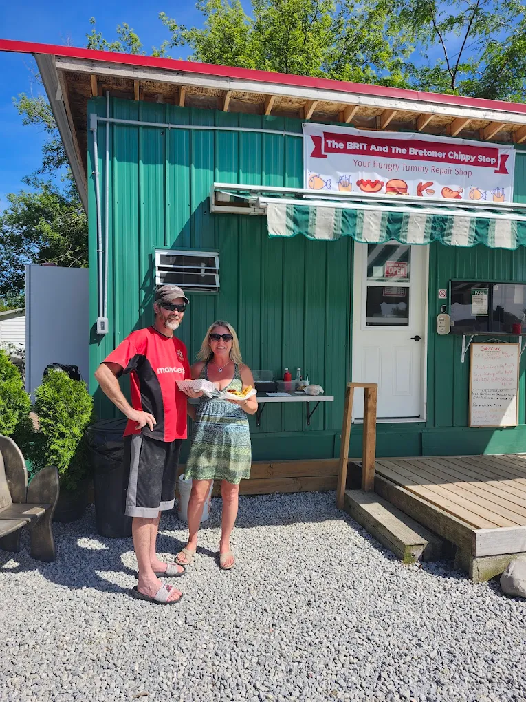 The Brit and Bretoner Chippy Stop made to repair hungry tummies with: Homemade burgers, fries, chicken and fish. Newbury.