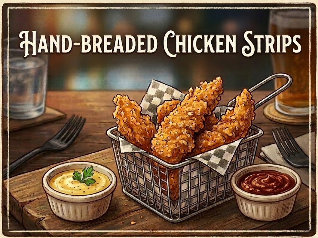 House Favourite — Hand-breaded chicken strips, fried to crispy golden perfection.