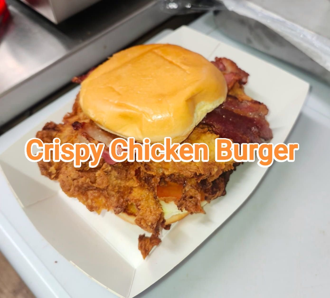 A fresh breaded chicken burger, fried golden and crispy, served on a toasted bun for the perfect balance of crunch, flavor, and comfort.